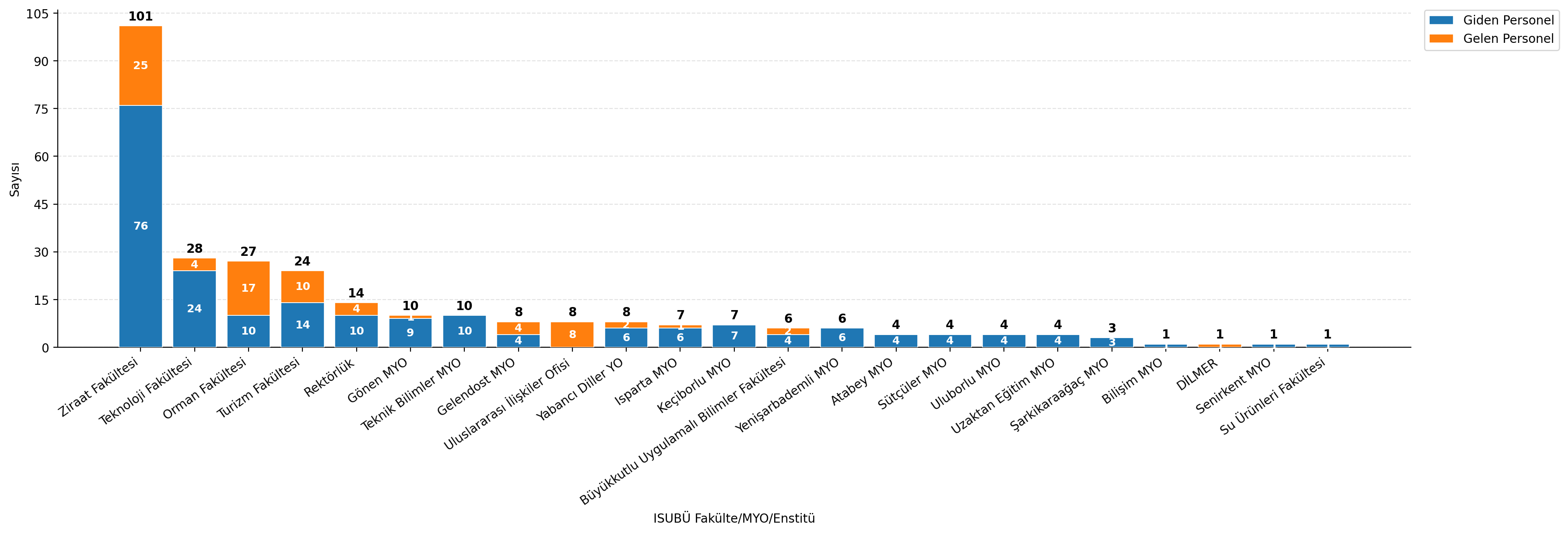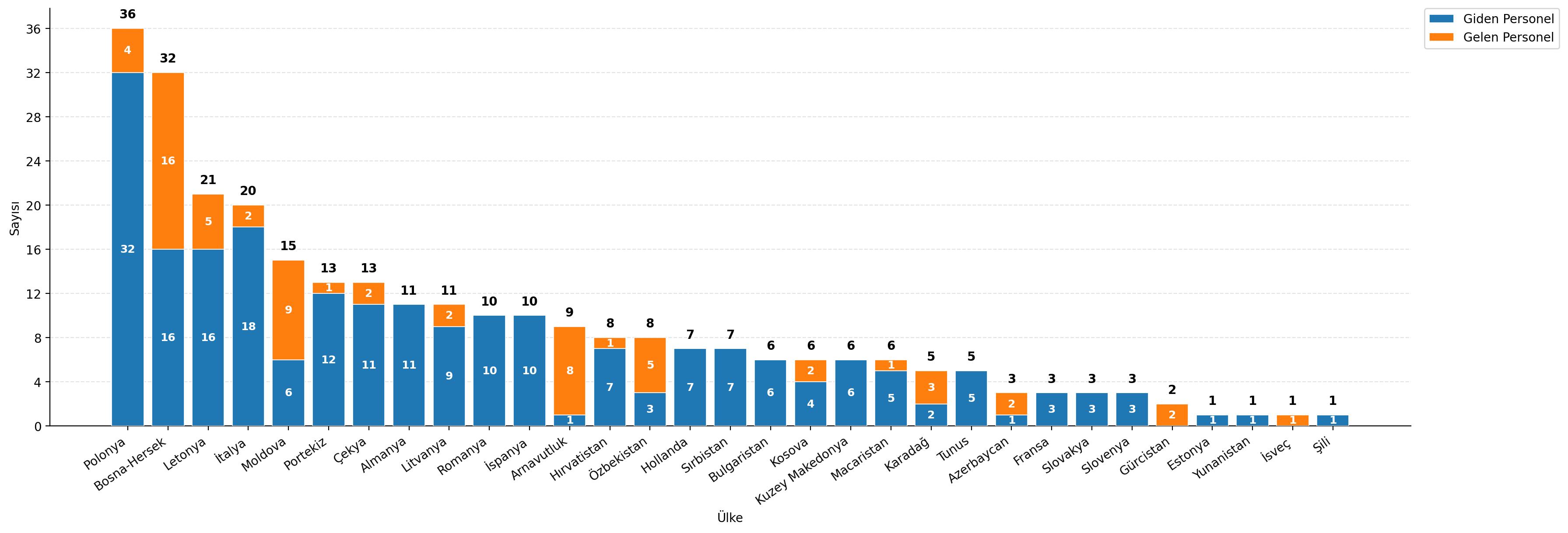 Personel Hareketlilik Sayıları (Ders Verme, Eğitim Alma)