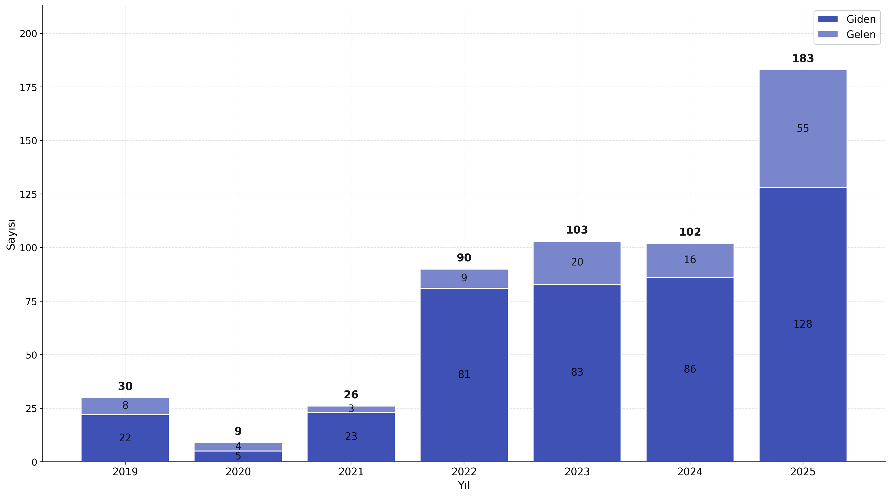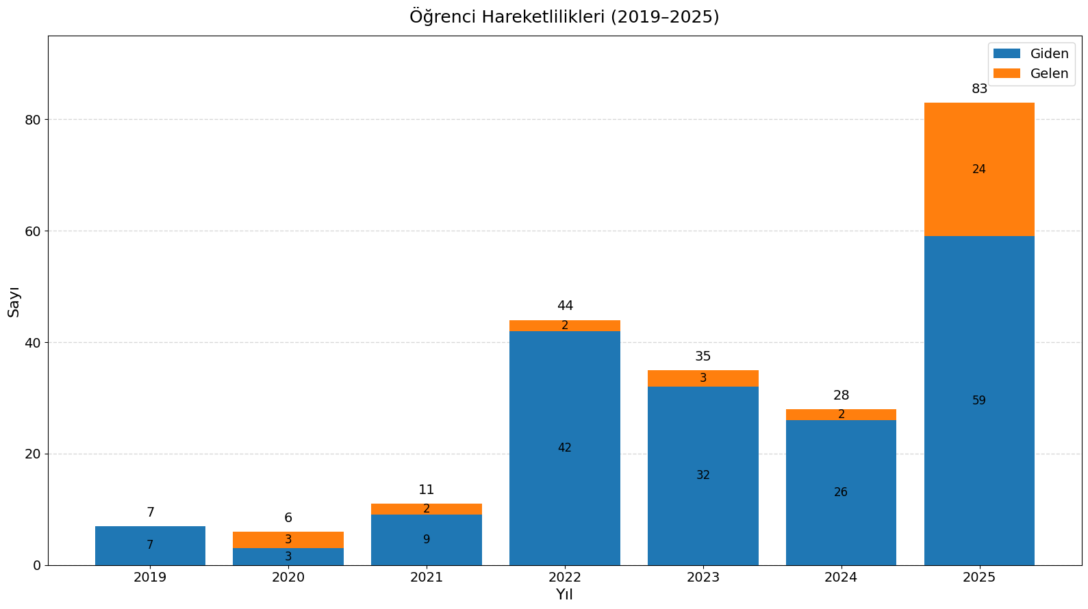 Öğrenci Hareketlilik Sayıları (Öğrenim, Staj, Kısa Dönem Doktora)
